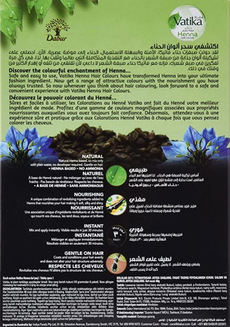 تغطي شعرك الرمادي بنسبة تصل إلى 100% باستخدام صبغة شعر الحناء من فاتيكا، وكما أنها تساعدك على الحصول على لون أسود غني وتجعل شعرك يبدو طبيعيًا ومغذياً خالية من الأمونيا ومن المواد الكيميائية الضارة تغطية للشعر الأبيض بنسبة 100%