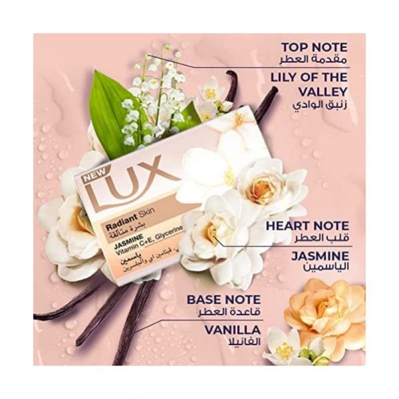 صابون لوكس لبشرة متألقة الجديد غني بفيتامين C و E والجلسرين ، وهي تركيبة ثلاثية الفوائد صابون لوكس لبشرة متألقة يضيء ويغذي ويرطب بشرتك ليكشف عن بشرة متألقة صابون لوكس الجديد هو خطوتك الأولى للحصول على بشرة معطرة ومشرقة وناعمة تدوم طويلاً انغمس في صابون لوكس المغذي ، ورغوة كريمية غنية ، ومزيج عطري رقيق من الياسمين أثناء الاستحمام جربي التحول إلى بشرة متألقة في غضون أسابيع قليلة بعد استخدام قطعة الصابون هذه صابون الاستحمام ومنتجات الجسم لوكس تجعل البشرة متألقة وتترك رائحة تدوم طويلاً وتُبهج الحواس