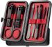 مجموعة مانيكير مجموعة باديكير مقص الأظافر 8 في 1 من الفولاذ المقاوم للصدأ عالي الدقة مقص حاد للرجال والنساء لأصابع اليدين وأظافر القدمين مقص هزاز مع حقيبة أنيقة (أسود وأحمر _8 في 1)
